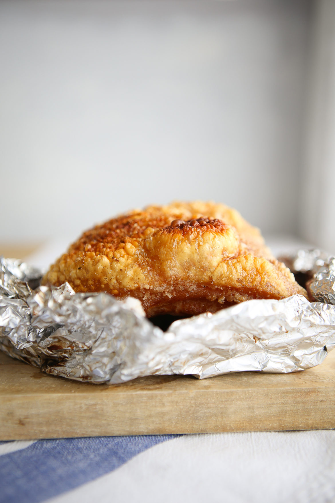 2 Frank Kutteri seapõske Marinaadi komponente - 0,5l kalja, 1tl soola, 1 punane sibul, 1 spl mett, 1tl teralist sinepit, 1tl Santa Maria seesami & wasabi maitseainesegu, Santa Maria vahemere ürdisegu. 3-4 loorberilehte ning kuna mul veel hoovis värskeid ürte, siis viskasin neid ka peoga hulka. soola foolium ja küpsetuspaber, õli Pane põsed 24-ks tunniks külmakappi marineeruma, aga ainult see osa, mis on kamara all. 24 tunni pärast võta põsed välja ja kuivata hoolikalt kamar veel majapidamispaberiga maksimaalselt kuivaks. Kuumuta ahi 190 kraadini. Seejärel lõika põsed võrdseteks tükkideks, et küpsetamine oleks võimalikult ühtlane. Pane plaadile kaks kihti fooliumi ja kolmandasse kihti mähi oma seapõsk. Ta peaks jääma nagu pisikesesse kookonisse (kuid pealt lahti). Seejärel kata kamar vähemalt 2-3mm paksuse soolakihiga, et tekiks soolakoorik. See aitab ka lihal väga mahlaseks jääda. Küpseta ca 2,3 tundi. Seejärel võta liha ahjust välja ning ettevaatlikult eemalda soolakoorik. Määri kamarale õli ja küpseta ülemisel siinil seni kuni tekkinud on üks ülemõistuse krõbe kamar. Minul võttis see aega kuskil 10-12 minutit. Lase lihal vähemalt 15 minutit seista enne kui serveerid. Pean tunnistama, et ma enam vist seapõski ette ei võtaks, aga sellest kamarast olen küll sõltuvuses ja krõbeda kamaraga ahjupraad on meie peres menüüs ikka sagedamini kui kunagi varem. Postitus on tehtud koostöös Frank Kutteri seakasvatajatega.
