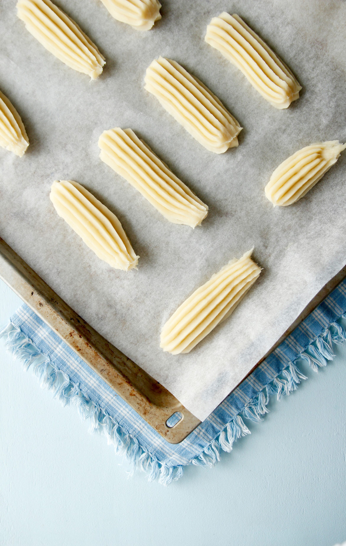 Pritsi meelepärase pikkusega churrod küpsetuspaberiga kaetud plaadile ja tõsta külma u 15 min. Meelepärane pikkus vali ise, üldjuhul jääb see 5-7 cm vahele ning lõpeta ots noa või kääride abil.