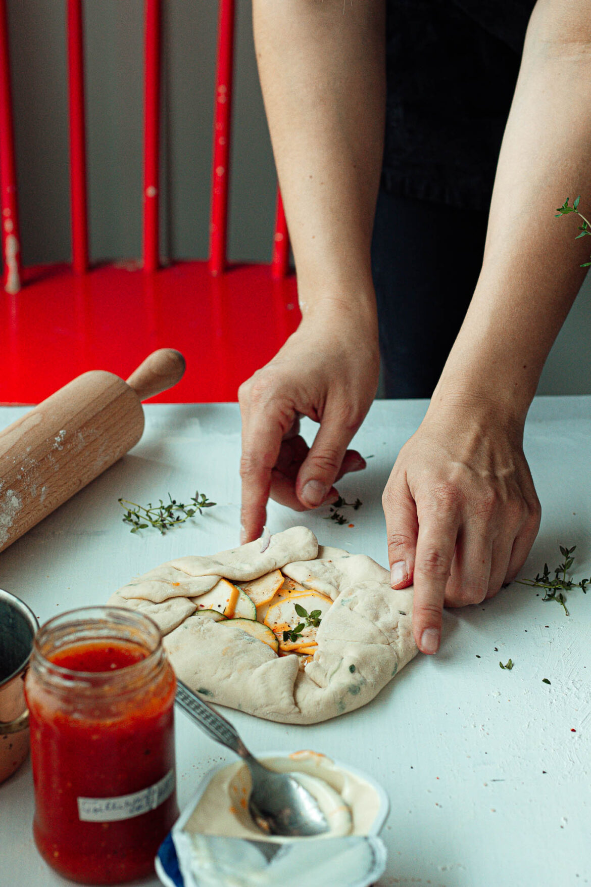 Tegelikult käib see peedigalette kokku minu eelmise retseptiga – palsamiäädikas ja worcestershire kastmes marineerunud sisefilee. See kombo on lihtsalt ülemõistuse maitsev ja tegelikult väga lihtne teha. Mina kasutasin oma galette’i retseptiks oma ülimalt lollikindlat pitsataigna retsepti ja see töötas suurepäraselt. Lisaks peedile, kasutasin kas suvikõrvitsat, sest lihtsalt mu pisike kasvuhoone annab nii palju saaki, et patt oleks mitte seda kõike maksimaalselt ära kasutada. Minu suur õppetund oli aga selles, et peet ja suvikõrvits tuleb kindlasti erineva paksusega viilutada, siis saab need jätta mõnusalt krõmpsuks.